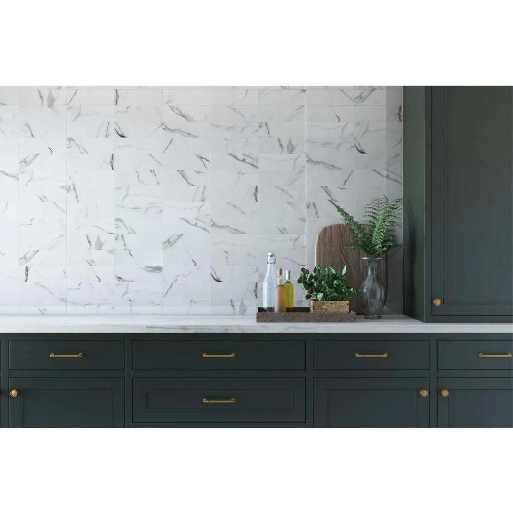 The ELIANE Belmar Ceramic Wall Tile series features the timeless marble design. Belmar’s detailed veining and neutral white and beige colors bring a luxurious feel to any room. Suitable for indoor installation, the Belmar series offers versatile options for kitchen and bathroom walls, as well as elegant floors for the entire home. This series has a high sheen with a smooth, glazed finish.