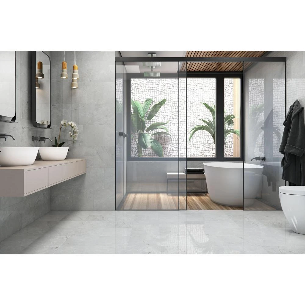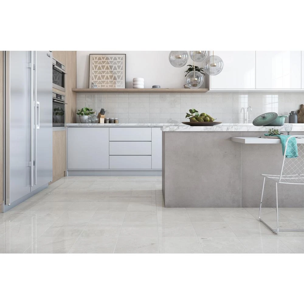 The ELIANE Delray Ceramic Floor and Wall Tile series features a timeless marble design. Delray’s detailed veining and neutral white and beige colors bring a luxurious feel to any room. Suitable for indoor installation, the Delray series offers versatile options for kitchen and bathroom walls, as well as elegant floors for the entire home. This series has a high sheen with a smooth, glazed finish.