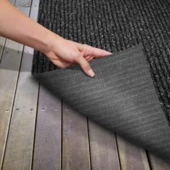 - Features low pile height (approx. ¼ inch) with ribbed texture for traction