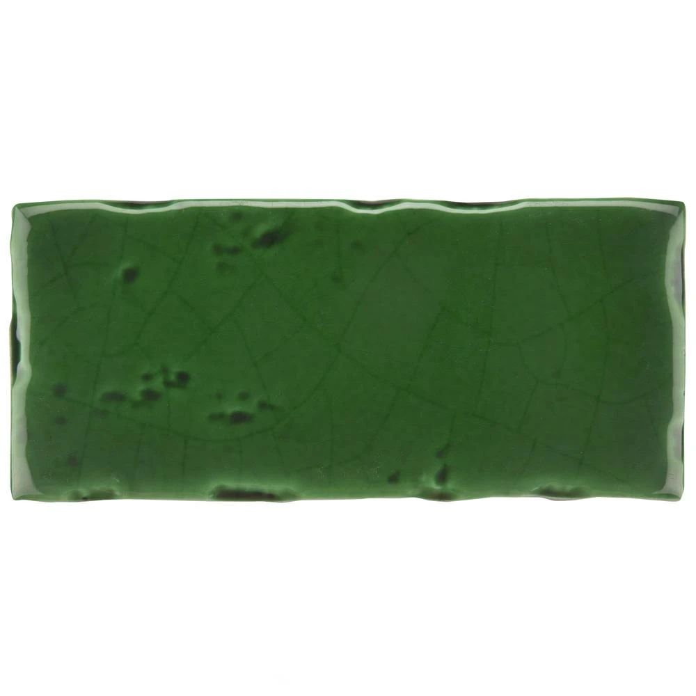 Capture a handcrafted, artisan appearance that seems to have been derived directly from twentieth-century Spain with the Merola Tile Novecento Verdin 2-1/2 in. x 5-1/8 in. Ceramic Subway Wall Tile. With a forest green hand-painted crackle watercolor glaze, this rustic tile offers a glossy, reflective finish for a glass-like appearance. Asymmetrical edges and a smooth surface with varying indentations throughout this glossy tile fashion a handmade appearance. Derived from the classic subway format, this tile is tastefully smaller for a distinctive, unexpected design element. Due to its partially handmade process, each tile could offer slight size variation. This old-world tile is great as a cohesive look or paired with other items in the Novecento program. Intended for interior wall use, this tile is an excellent selection to accent your backsplash, shower wall, fireplace facade or accent wall. It is necessary that you seal this tile before grouting to prevent the absorption of staining agents over time.